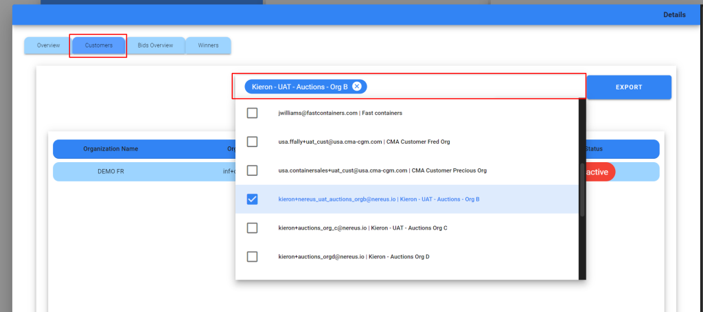 Type and select existing customers you would like to add to the auction